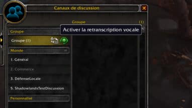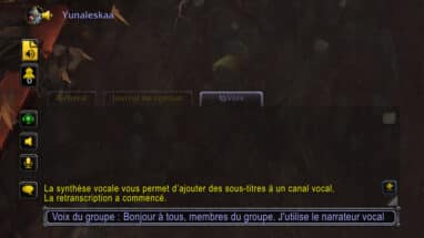 À partir de la mise à jour 9.1 de Shadowlands, une nouvelle option d'accessibilité sera disponible depuis les paramètres de l'interface pour retranscrire la discussion audio. Un narrateur retransmet en audio tous les messages sur le canal de discussion, selon les options sélectionnées, pour écouter directement les instructions sans devoir lire nécessairement les messages écrits. Cette option permet également de communiquer avec les autres joueurs grâce au canal de discussion textuel, sans devoir utiliser un microphone.