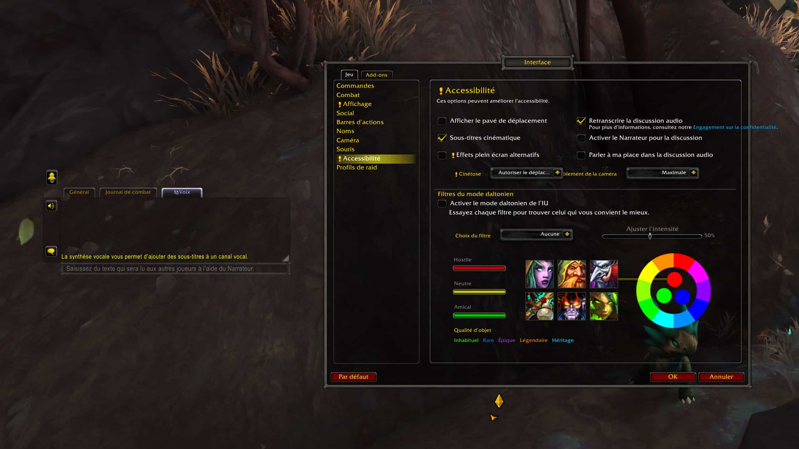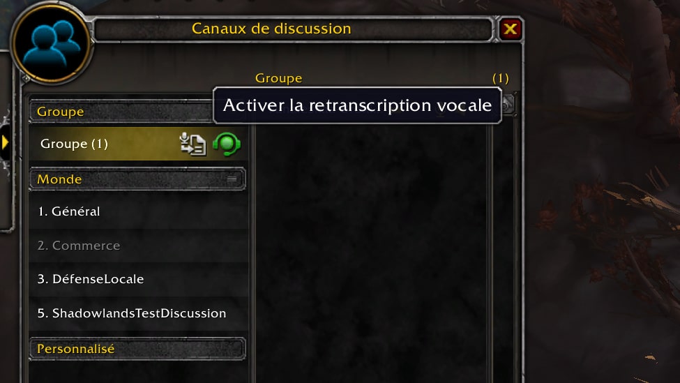 À partir de la mise à jour 9.1 de Shadowlands, une nouvelle option d'accessibilité sera disponible depuis les paramètres de l'interface pour retranscrire la discussion audio. Un narrateur retransmet en audio tous les messages sur le canal de discussion, selon les options sélectionnées, pour écouter directement les instructions sans devoir lire nécessairement les messages écrits. Cette option permet également de communiquer avec les autres joueurs grâce au canal de discussion textuel, sans devoir utiliser un microphone.