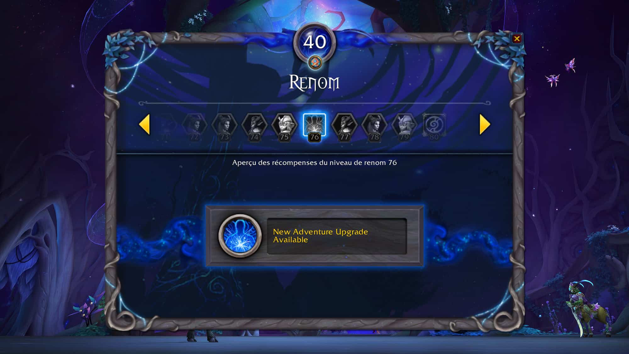 - Il est possible de progresser jusqu'au renom 80 pour des nouveaux avantages : bonus d'anima, aventures et collection.
