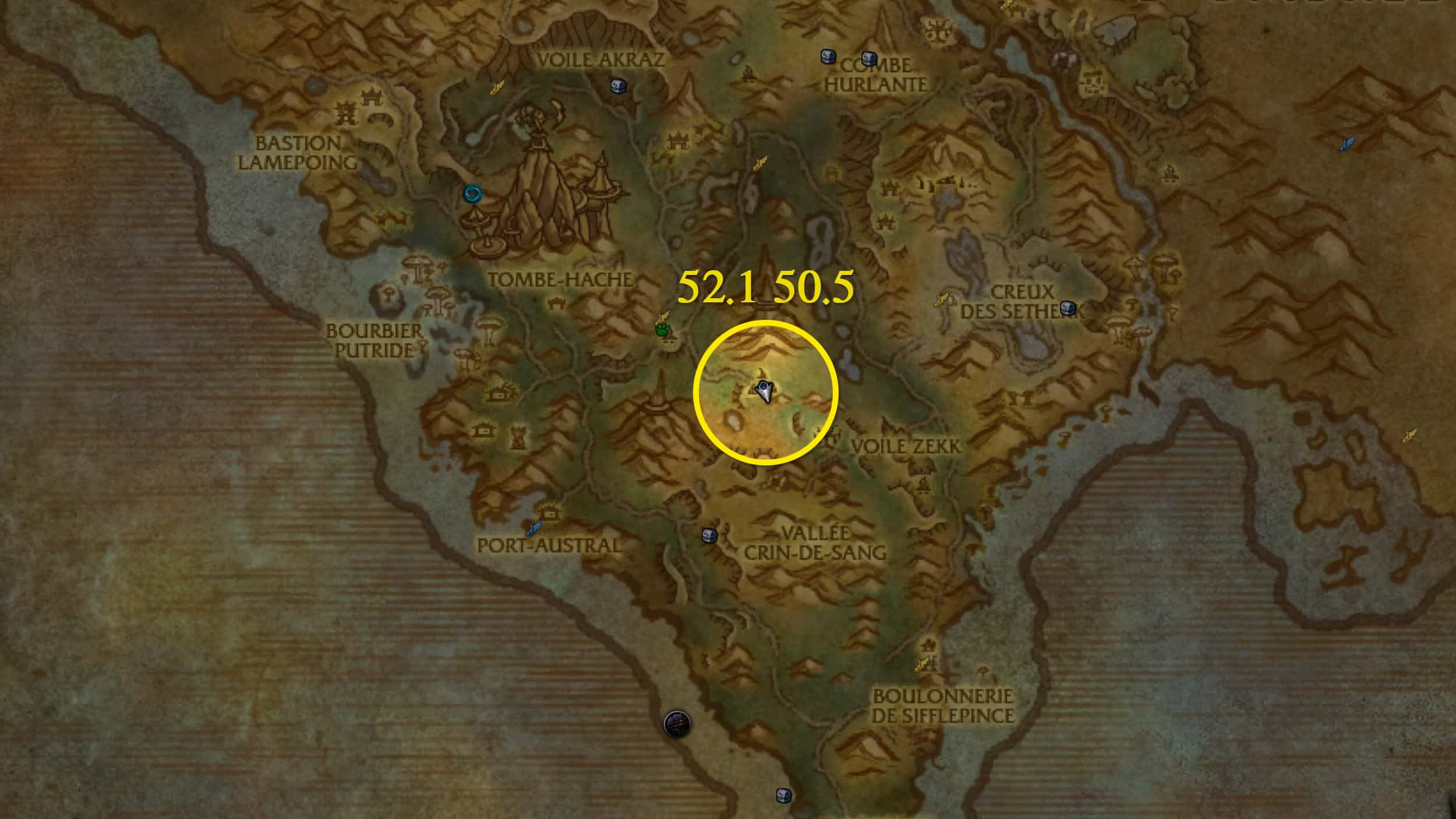 Zektar est situé au centre de la région des Flèches d'Arak en Draenor aux coordonnées