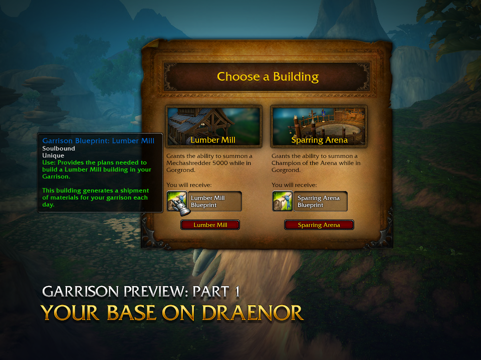 Nous voulions que les joueurs soient récompensés lorsqu’ils renforcent la résistance contre la Horde de Fer en construisant un bâtiment dans une zone (et en le débloquant donc pour leur fief). Pour vous faire une idée des puissants et multiples avantages de zone que nous avons imaginés, dites-vous que vous aurez notamment la possibilité d’invoquer un redoutable garde du corps ogre depuis votre arène d’entraînement de Gorgrond, ou de demander des frappes d’artillerie à votre armurerie de Talador ! Nous voulons que chaque zone offre des choix plus intéressants et captivants les uns que les autres.