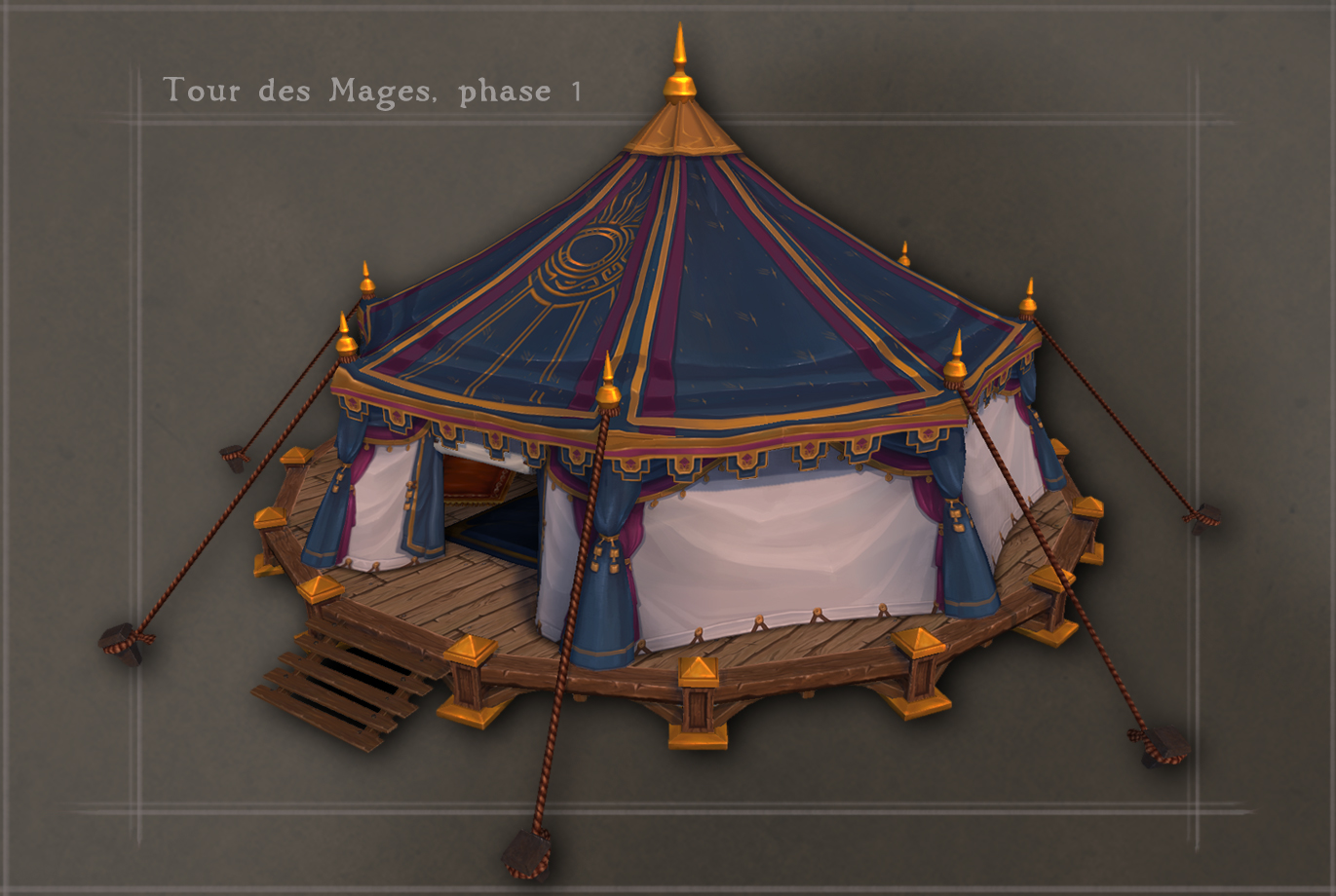 Trouver l’apparence idéale n’était que l’une des nombreuses tâches à accomplir. L’accroissement progressif de la puissance des fiefs étant un élément essentiel de cette fonctionnalité, nous voulions refléter cette évolution dans les graphismes. Concrètement, chaque bâtiment de fief doit pouvoir évoluer en versions de plus en plus épiques. Le système de construction des fiefs (qui permet de personnaliser leur agencement et de placer les bâtiments où bon vous semble) a représenté un véritable défi pour l’équipe artistique, car si le bâtiment doit être plus épique à chaque amélioration, ses fondations, elles, doivent rester inchangées. Voici quelques exemples des travaux en cours de développement ci-dessous.