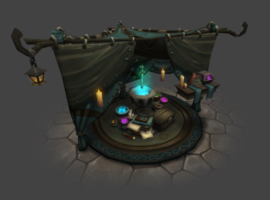 Au début de la phase de développement des fiefs, nous avons décidé de commencer par les bâtiments de l’Alliance, que nous allons vous présenter aujourd’hui. Nous nous sommes dit qu’il serait amusant pour les joueurs de découvrir certains des bâtiments originaux d’Elwynn et des Carmines. Jimmy Lo, notre artiste conceptuel a proposé de revisiter le passé en remettant certains des premiers édifices au goût du jour. Nous avons tenté de conserver certaines des particularités les plus reconnaissables des bâtiments, tout en y appliquant de nouvelles textures pour l’extension à venir. Après quelques essais, nous nous sommes rendu compte que ces bâtiments étaient peut-être tropfamiliers, qu’ils ne se prêtaient pas vraiment à une refonte épique et ne correspondaient pas à notre nouvelle fonctionnalité. Nous avons donc décidé d’aller encore plus loin et de faire bien plus que simplement rafraîchir un vieux bâtiment. Nous avons donc bâti le nouveau sur les fondations de l’ancien. Tout en conservant l’esprit d’origine des vieux bâtiments, nous avons commencé à explorer de nouveaux concepts. Nous avons élaboré de nouvelles silhouettes et mis en avant les spécificités de chaque bâtiment, créant ainsi des améliorations visuellement captivantes, à découvrir au fil du jeu. Ainsi, quand les joueurs verront une grosse caisse en bois et une scie émoussée, ils sauront qu’il s’agit d’une scierie de premier niveau. Quand leur armée sera assez importante et qu’ils auront enfin accès à la scierie de troisième niveau, croyez-moi, la Horde de Fer ne leur fera plus peur ! Je dois l’avouer, j’ai un très gros faible pour la tour des mages. D’accord, j’en suis carrément amoureuse ! Sa bibliothèque aux étagères bien garnies invite le joueur à bouquiner ses grimoires préférés (le mien, c’est « Les sorts de Béatrice : voyage dans les terres sauvages de Hardivar »), emmitouflé dans une couverture et pelotonné avec son familier préféré dans un fauteuil confortable, tandis que les flammes de l’âtre s’éteignent doucement. Lors de la création artistique, ce sont ces petites narrations qui guident l’élaboration de la scène. L’éclairage, le choix des matériaux, les silhouettes et la minutie des détails stimuleront l’imagination du joueur et lui donneront envie de voir au-delà des pixels et des textures pour abandonner son personnage à son environnement. J’ai tendance à considérer les bâtiments comme des personnages ; chacun possède une personnalité qui lui est propre, depuis les petites imperfections à l’embrasure d’une porte jusqu’à la chaleur réconfortante de la cheminée de l’hôtel de ville. Je suis sûre que vous saurez apprécier l’amour et l’attention que nous avons portés à tous ces détails. Je m’appelle Eric Browning, je suis responsable de la conception graphique des accessoires, et mon équipe est chargée des effets spéciaux et des décors de base dans WoW. Pour les fiefs, nous avons plus que jamais mis l’accent sur l’aspect « décor », ce qui nous a permis de mieux appréhender la validité d’unkiten particulier dès le début. Mais je laisse aux trois infographistes concernés le soin de vous expliquer tout cela. « L’un des plus puissants outils de l’infographiste est sans conteste la narration, et l’occupation de l’espace dans les fiefs nous a vraiment permis de nous concentrer sur cet aspect. Décorer un ensemble ou un bâtiment précis permet d’apporter une perspective unique à la façon dont l’espace est utilisé, la façon même dont il est créé et la manière dont tous les éléments se combinent pour véhiculer un thème global. Les petits détails et nuances des accessoires peuvent aider le joueur à mieux appréhender l’atmosphère d’une zone donnée du jeu et contribuent à relater l’histoire de la zone tout entière. Nous abordons chacune de ces tâches dans leurs détails tout comme dans leur globalité ; nous évaluons la façon dont toutes les petites parties s’emboîtent pour former le tout. Et c’est là que réside toute la difficulté, car nous devons offrir au joueur des éléments visuels marquants et de grande qualité, dignes de World of Warcraft, sans l’agresser visuellement. » —Jordan Powers, concepteur graphique associé « Dans Warlords of Draenor, votre fief est votre forteresse, votre base dans un monde hostile, mais aussi, et surtout, votre foyer. L’un de nos principaux objectifs était non seulement d’apporter un peu de vie aux personnages qui peuplent le monde, mais aussi de leur donner un but et un sentiment d’appartenance à leur environnement. En tant qu’infographistes, il nous a fallu discuter, évaluer et développer un scénario qui donne une histoire à un espace précis et qui aide également le joueur à se sentir dans un monde cohérent et réaliste. Nous nous efforçons de donner à chaque ensemble d’accessoires (ou « kit ») un rôle et une place logiques afin d’affirmer l’appartenance d’un PNJ à un lieu particulier. Nous espérons ainsi pouvoir offrir au joueur une expérience visuellement plus riche et gratifiante. » —Eric Braddock, concepteur graphique 3D associé « En ce qui concerne les bâtiments liés aux métiers, nous souhaitions que le joueur soit en mesure d’évoluer non seulement avec ses points de compétences, mais aussi visuellement à travers son fief. A mesure que le joueur progresse, chaque bâtiment lié à un artisanat se développera viset le bâtiment deviendra de plus en plus imposant au fil de la progression du personnage-joueur. Chacun de ces bâtiments a été pour nous l’occasion de décrire le PNJ qui y travaille ; son apparence soignée ou au contraire négligée, la façon dont il travaille et la manière dont il évolue à vos côtés à mesure que votre fief se développe. Nous avons également pensé qu’il serait intéressant d