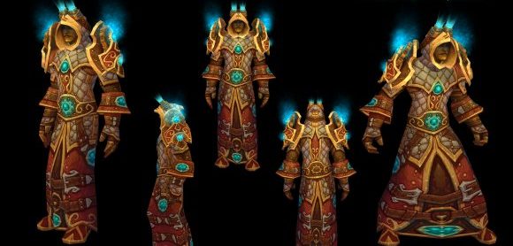 C’est toujours amusant de réinterpréter une classe de lanceur de sort pour l’éloigner de l’archétype habituel du mage et cet ensemble d’armure nous a donné l’opportunité parfaite pour le faire. La technologie mécanique gnome fait partie intégrale de l’univers de Warcraft, mais c’est quelque chose que nous n’avions jamais intriduit dans un ensemble d’armure utilisable par les joueurs auparavant. Le mélange de rouages animés, de tissu matelassé et des nombreuses sangles donne à cet ensemble d’armure une saveur « techno-mage » fascinante.