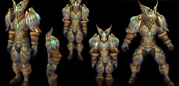 Les développeurs désiraient un ensemble d’armure qui devait changer de l’invocation du Gardien des anciens rois, et nous avons pensé que l’idée d’une armure de plaques ornée de plumes, d’or et d’argent, créerait une silhouette agressive mais aussi puissante et majestueuse. Le palier d’armure de raid précédent destiné aux paladins comportait pas mal de tissu, mais nous voulions que celui-ci soit uniquement composé de plates. Découvrez le nouveau set du paladin intitulé "Harnois de bataille de la gloire radieuse" ainsi qu'une rétrospective des anciens sets pour comparer l'évolution.