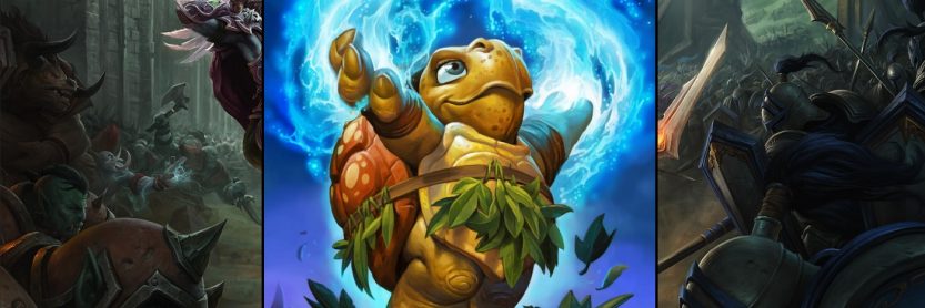 ) Ravasaure doré est une monture de la Horde avec le thème du continent de Zandalaar avec une armure dorée - Tortois est une mascotte avec un bébé tortollan : découvert depuis l'extension "Voyage au centre d'Un'Goro" sur Hearthstone
