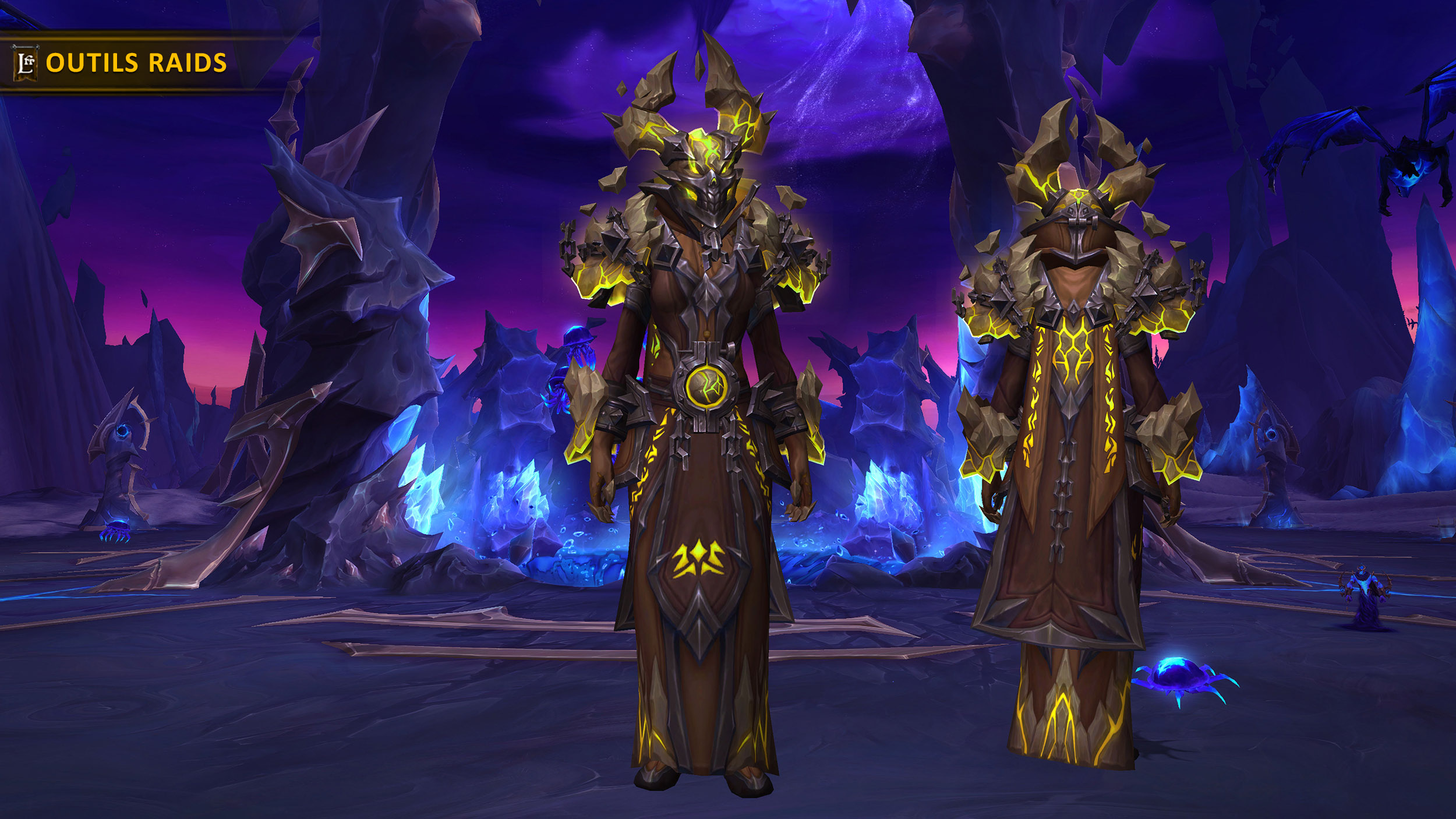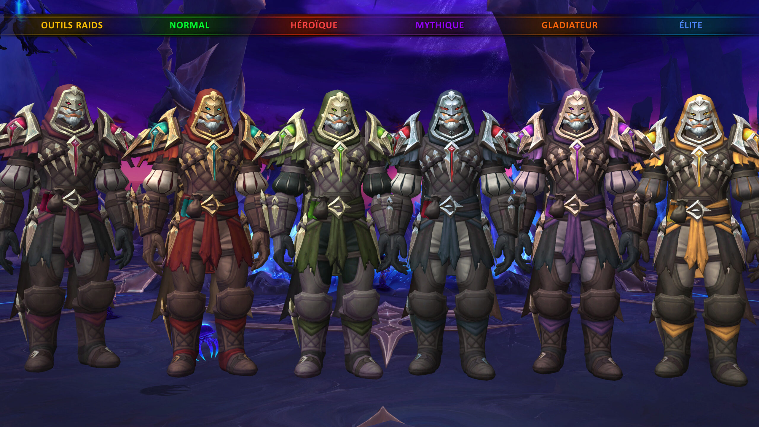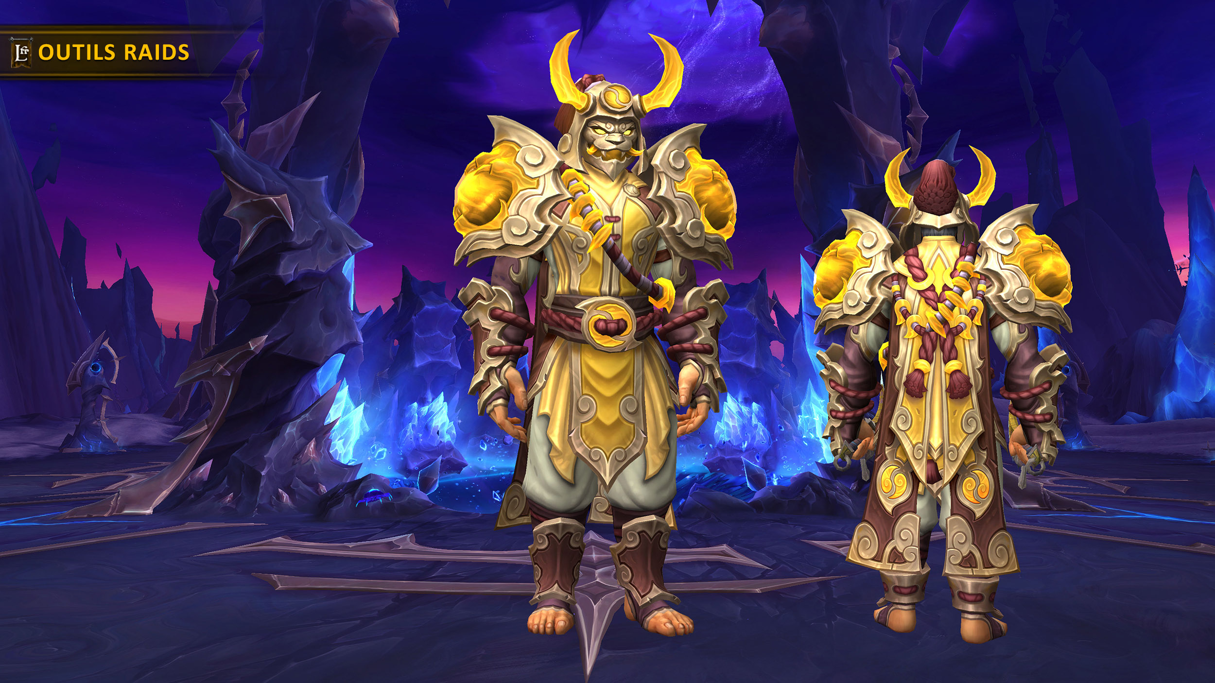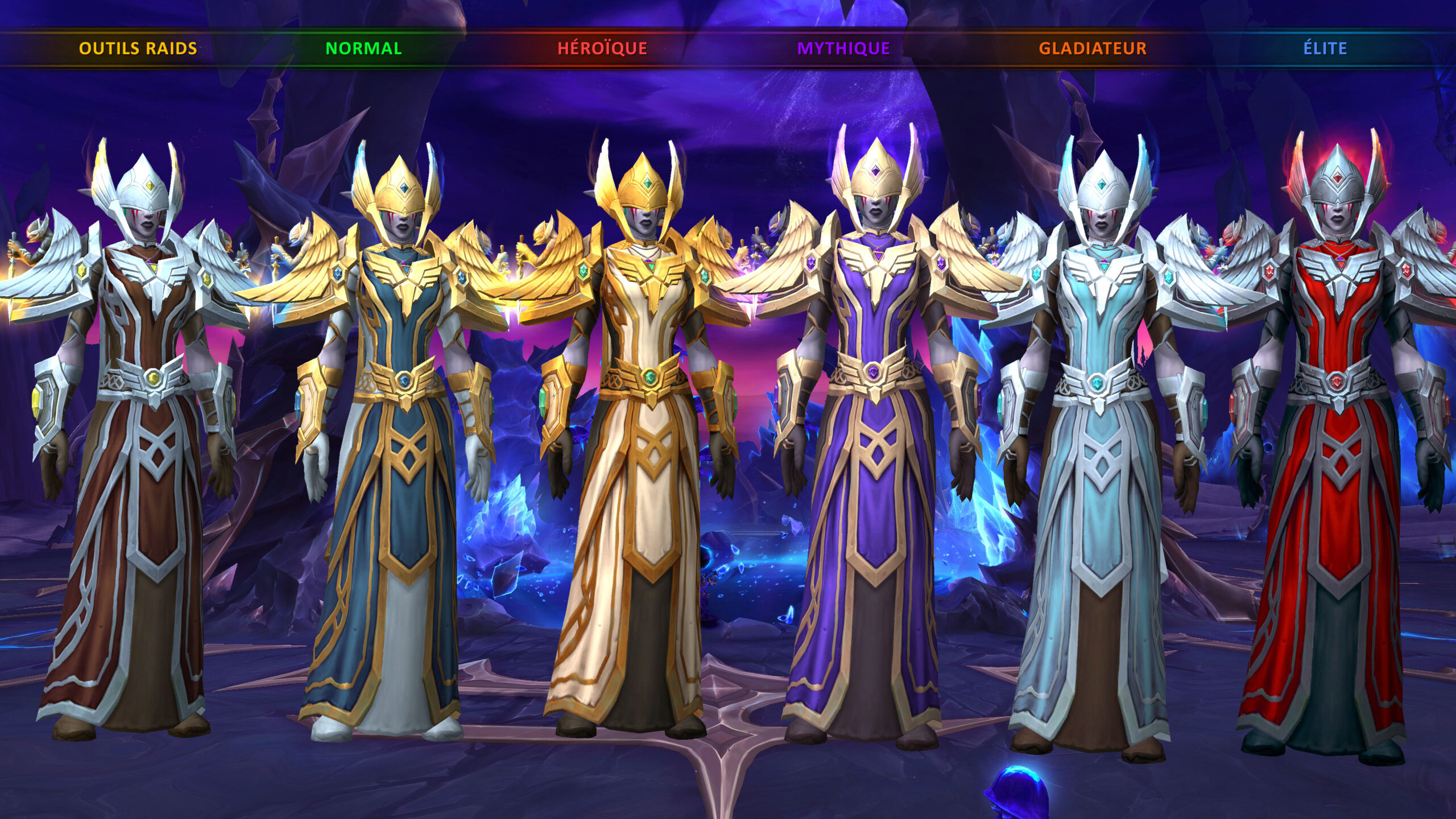 Une nouvelle mécanique permet de débloquer toutes les variations précédentes lorsque vous complétez un ensemble de la difficulté supérieure. Lorsque vous obtenez les 9 pièces de l'ensemble (hors sets y compris) en mode mythique, vous obtenez automatiquement les teintes de couleurs en mode outils raids, normal et héroïque.