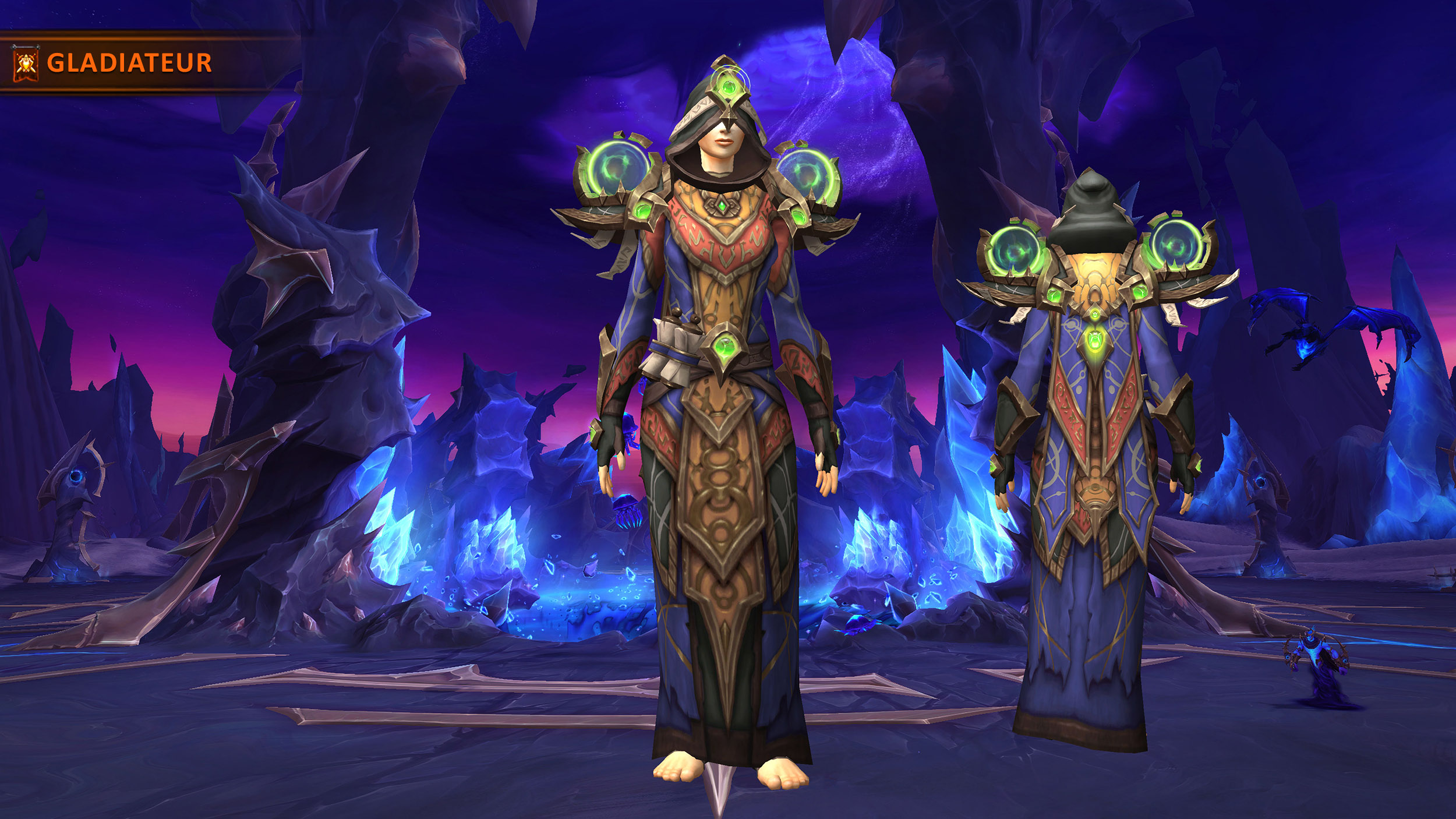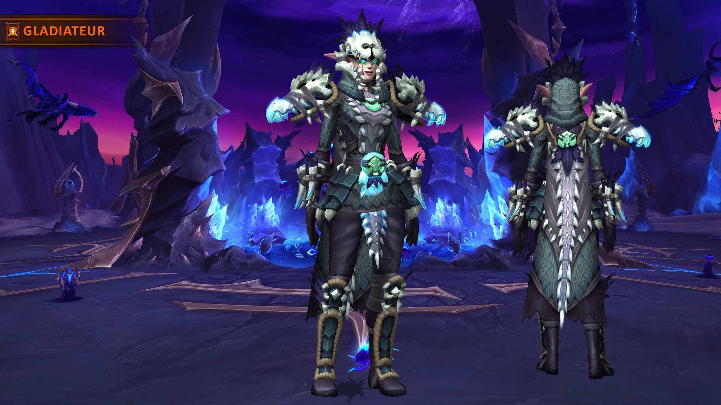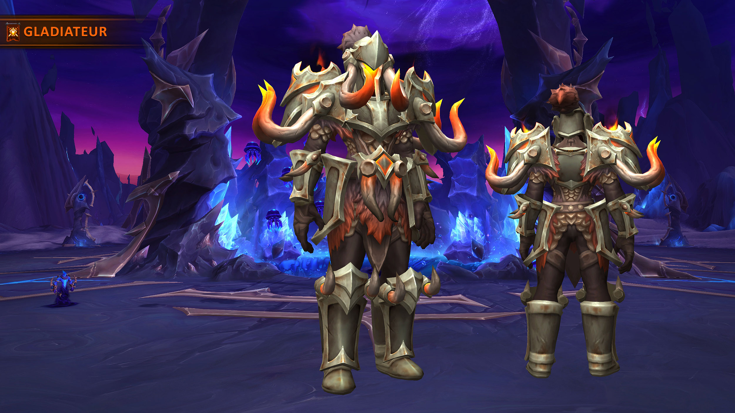 - Gladiateur : disponible avec les pièces d'équipement achetées contre les points de conquête JcJ.