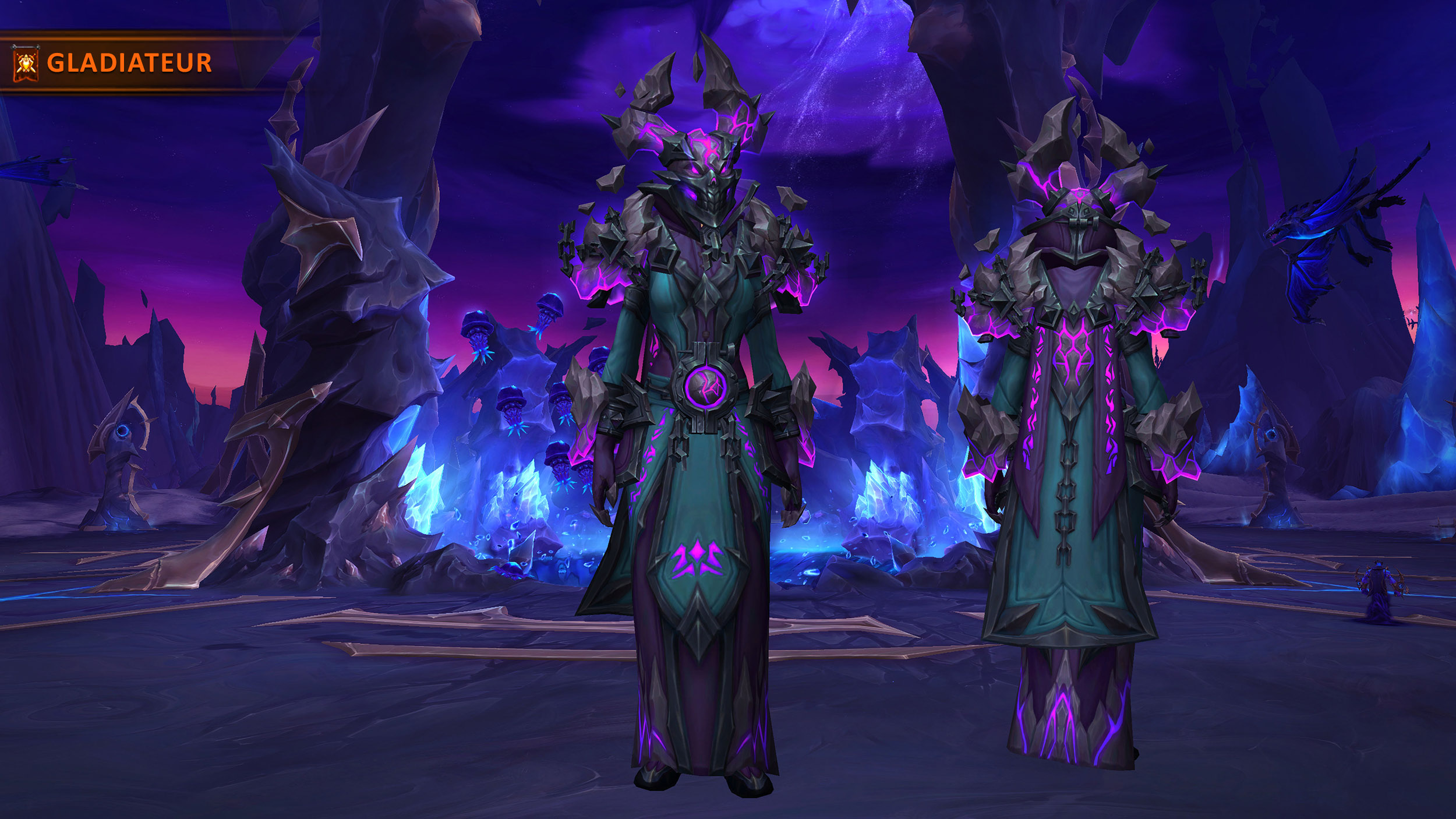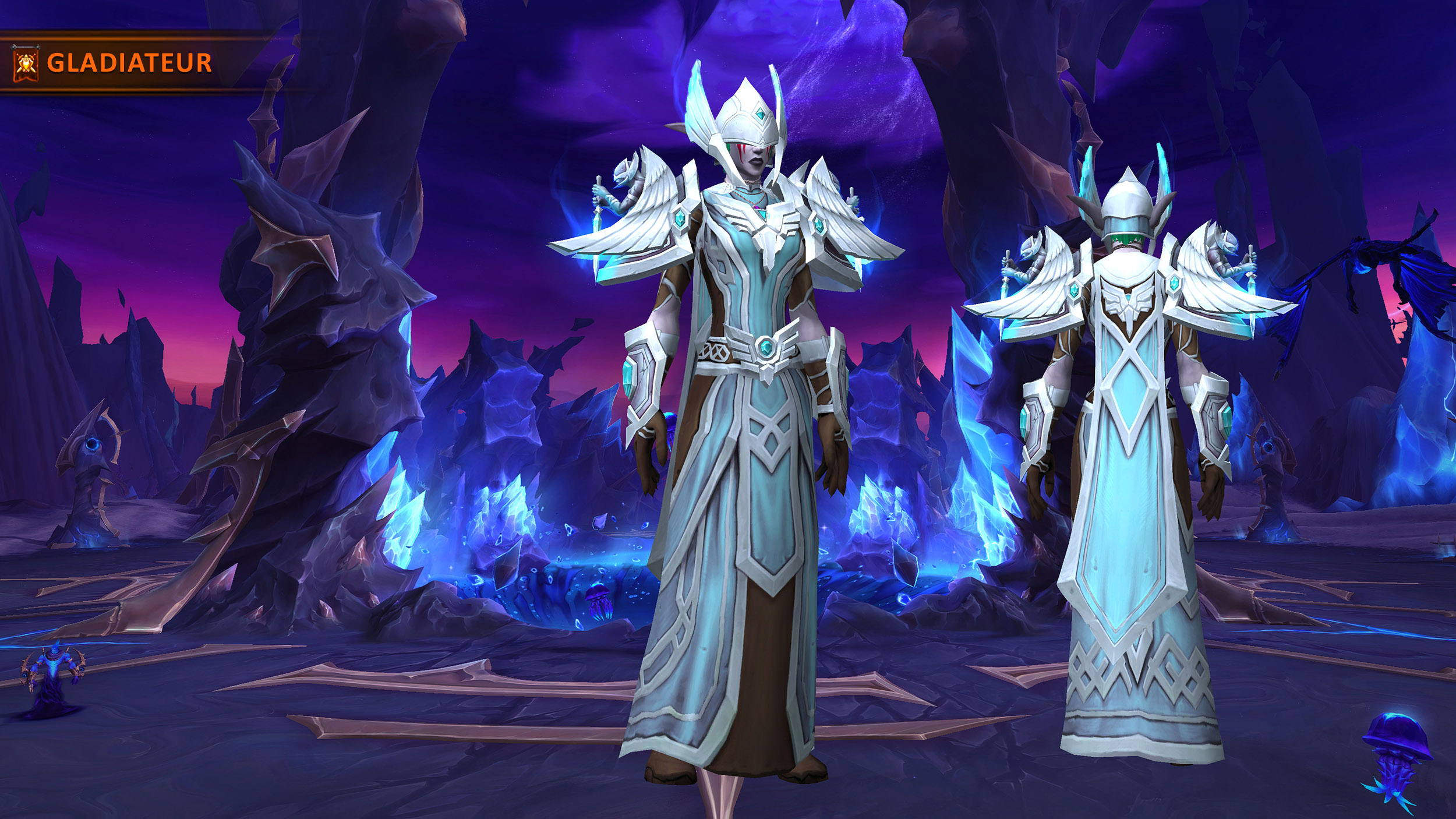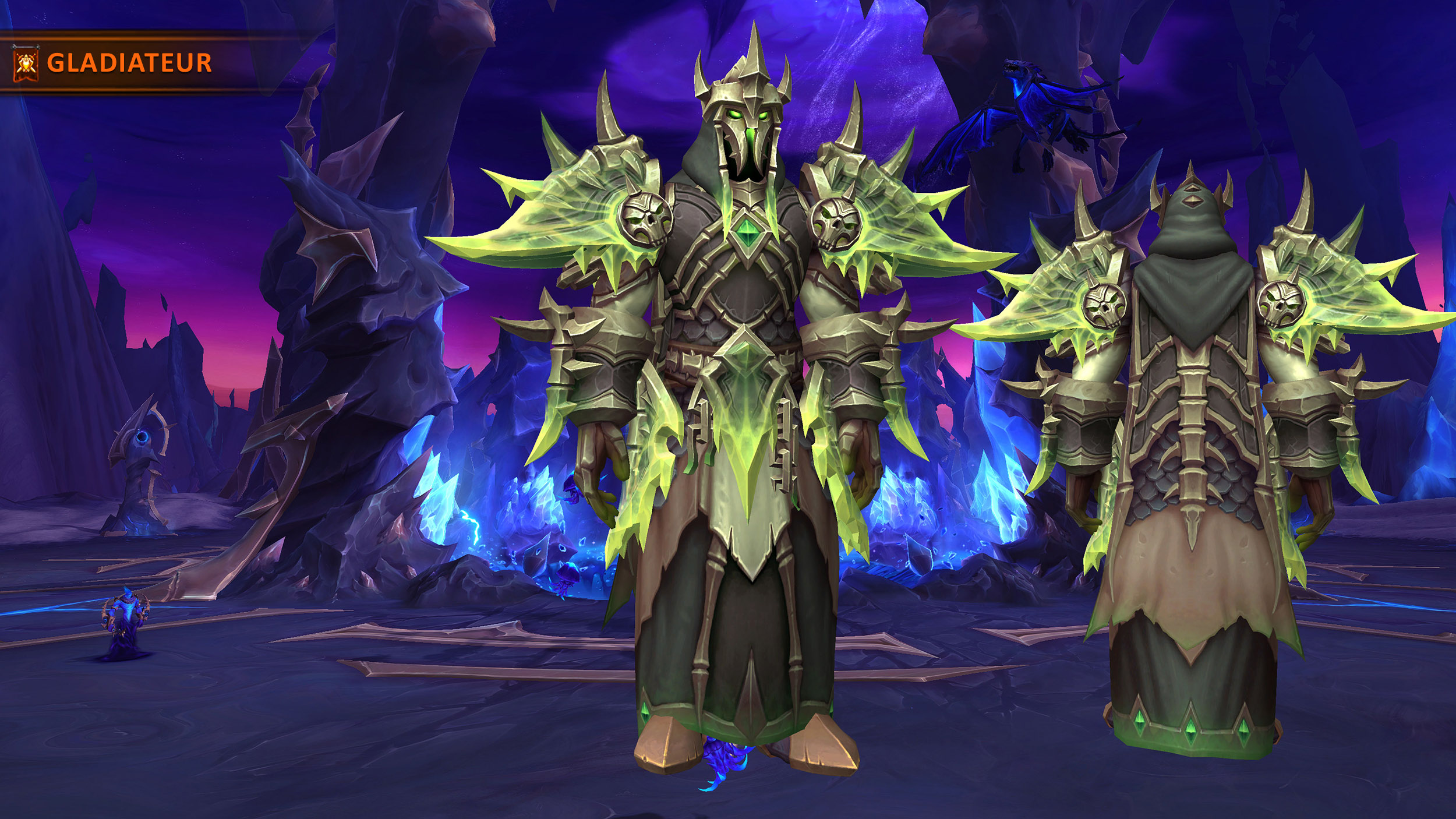 - Gladiateur : disponible avec les pièces d'équipement achetées contre les points de conquête JcJ.