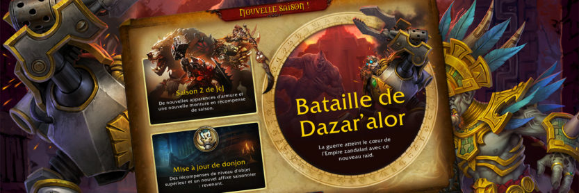 La saison 2 de Battle for Azeroth sera officiellement lancée à partir du 23 janvier 2019 en Europe, à 9h00 (heure de Paris) avec plusieurs améliorations au niveau d'objet pour ce nouveau palier de l'extension. Cette nouvelle saison a été détaillé sur les forums officiels par le directeur du jeu, Ion Hazzikostas, avec les modifications prévues basées sur l'amélioration à l'équipement. Cette saison est notamment marquée par l'affixe saisonnier Revenant pour les donjons de pierre mythique, le raid de la bataille de Dazar'alor ou même le cinquième anneau sur les armures azéritiques. Vous pouvez retrouver toutes les informations dans notre guide complet sur la saison 2 de Battle for Azeroth.