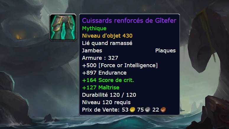 - Butin en donjon (niveau 15 max) : 465 niveau d'objet (5 supérieur au mode héroïque du raid à Ny'alotha).