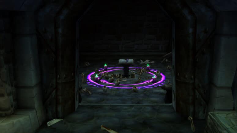 Une fois que vous avez tous les objets dans l'inventaire par les étapes précédentes, il est possible de commencer le rituel antique par l'utilisation du journal d'Éva. À l'opposé de l'entrée du donjon classique de Mists of Pandaria, une alcôve est disponible pour utiliser le