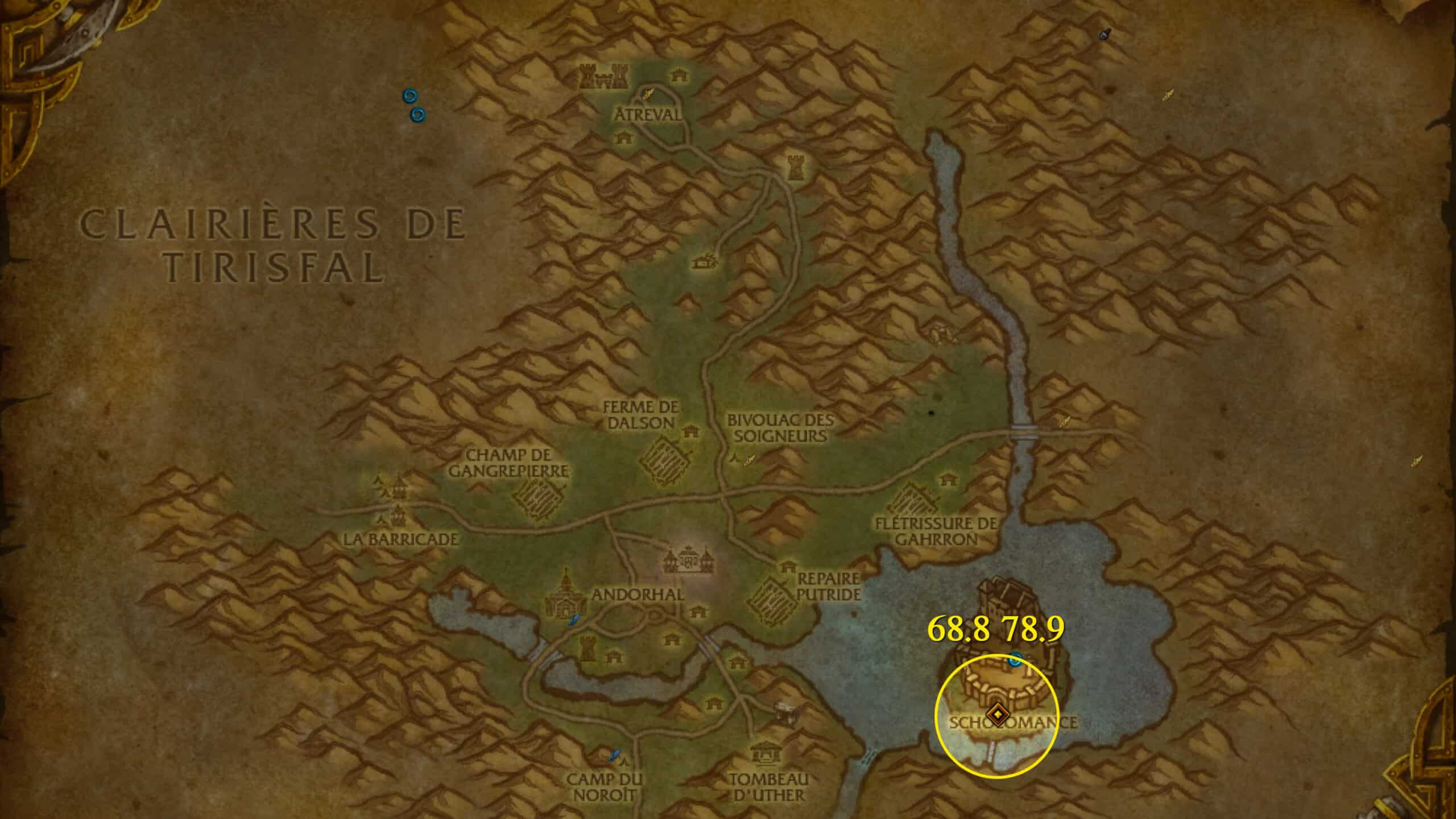 La première étape est de retourner à l'intérieur du donjon de Scholomance dans les Royaumes de l'Ouest. Une fois que vous êtes à l'intérieur, un bouquin est disponible dans une bibliothèque à la chambre des Visions. Cette salle est située avant de défaire le Maître Sombre Gandling à l'école d'apprentissage des étudiants distraits. La bibliothèque correspondante est située sur la partie droite de la salle, juste avant de se rendre au boss final. Il est difficile de le localiser puisqu'il est sur la rangée du milieu derrière les autres livres.