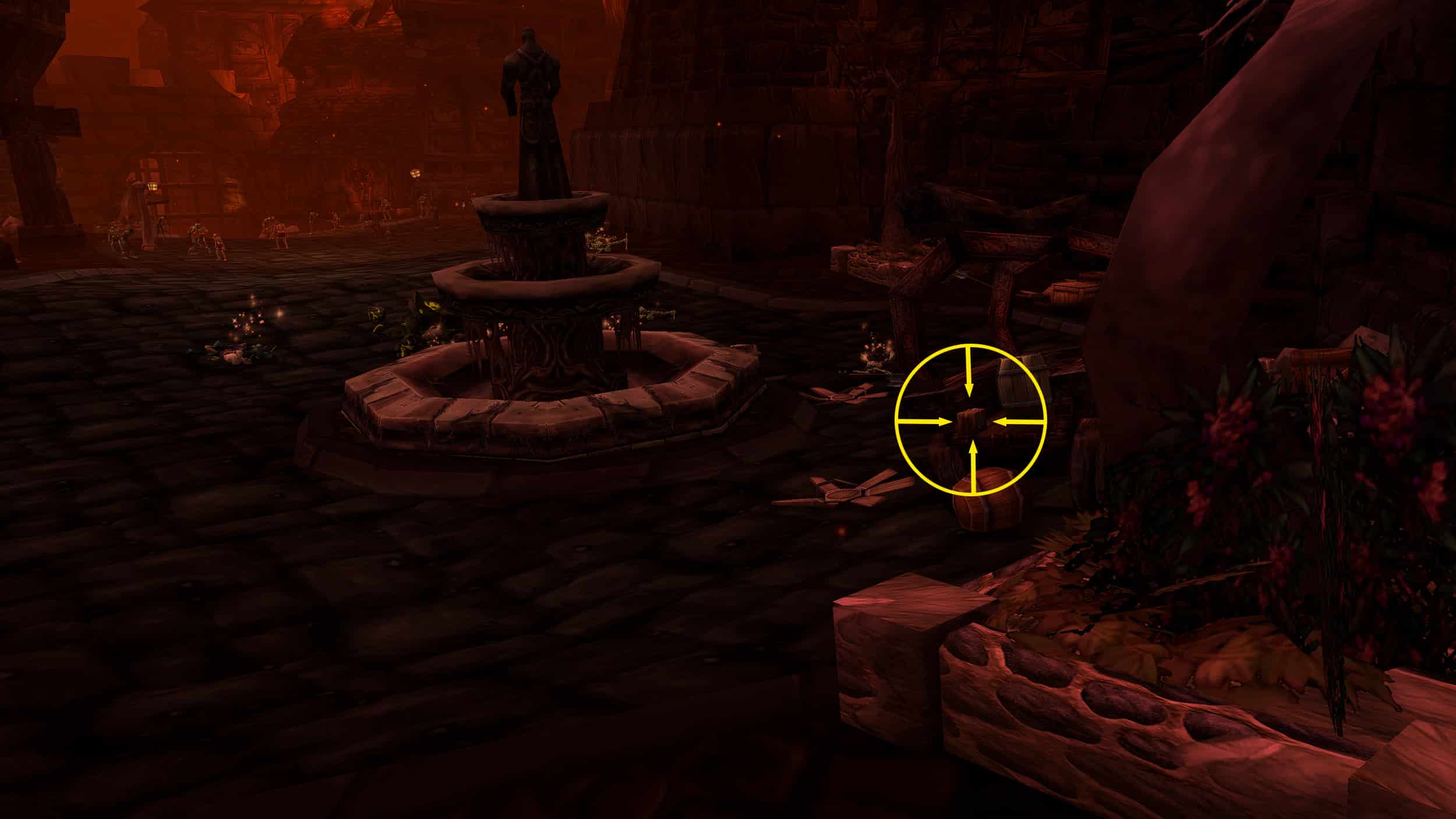 La sixième étape est de se rendre jusqu'à Caer Darrow à l'extérieur du donjon de Scholomance aux Maleterres de l'Ouest. La fontaine au centre de la zone propose un seau d'eau de fontaine sur le bord.