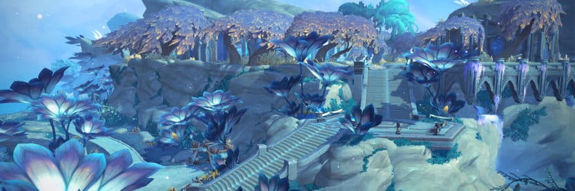 Votre premier arrêt en Bastion vous emmène dans le vestibule de l’Éternité. À l’instar d’autres sites kyrians, ce sanctuaire immaculé est patrouillé par des centurions d’anima et entretenu par de méticuleux régisseurs, qui récurent chaque pierre à la main jusqu’à ce qu’elle présente une brillance qui ne peut s’obtenir qu’avec de l’huile de coude (et des plumes).