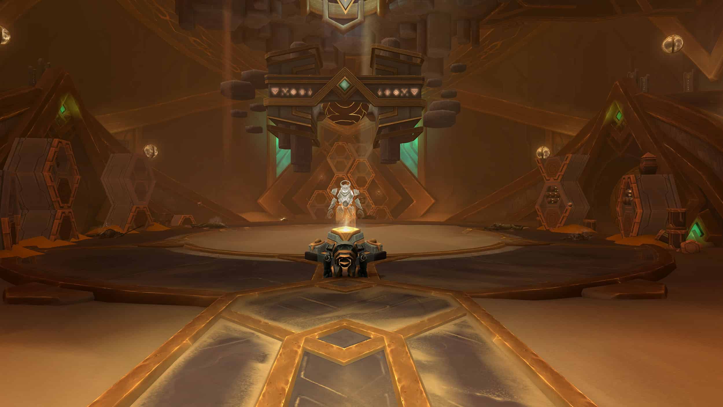 Translateurs dimensionnels sur l'équipement de Zereth Mortis pour parcourir une longue distance en fonction de l'étude des cryptogrammes des Fondateurs. De plus, le vol de Zereth Mortis est vivement conseillé pour atteindre ces hauteurs.