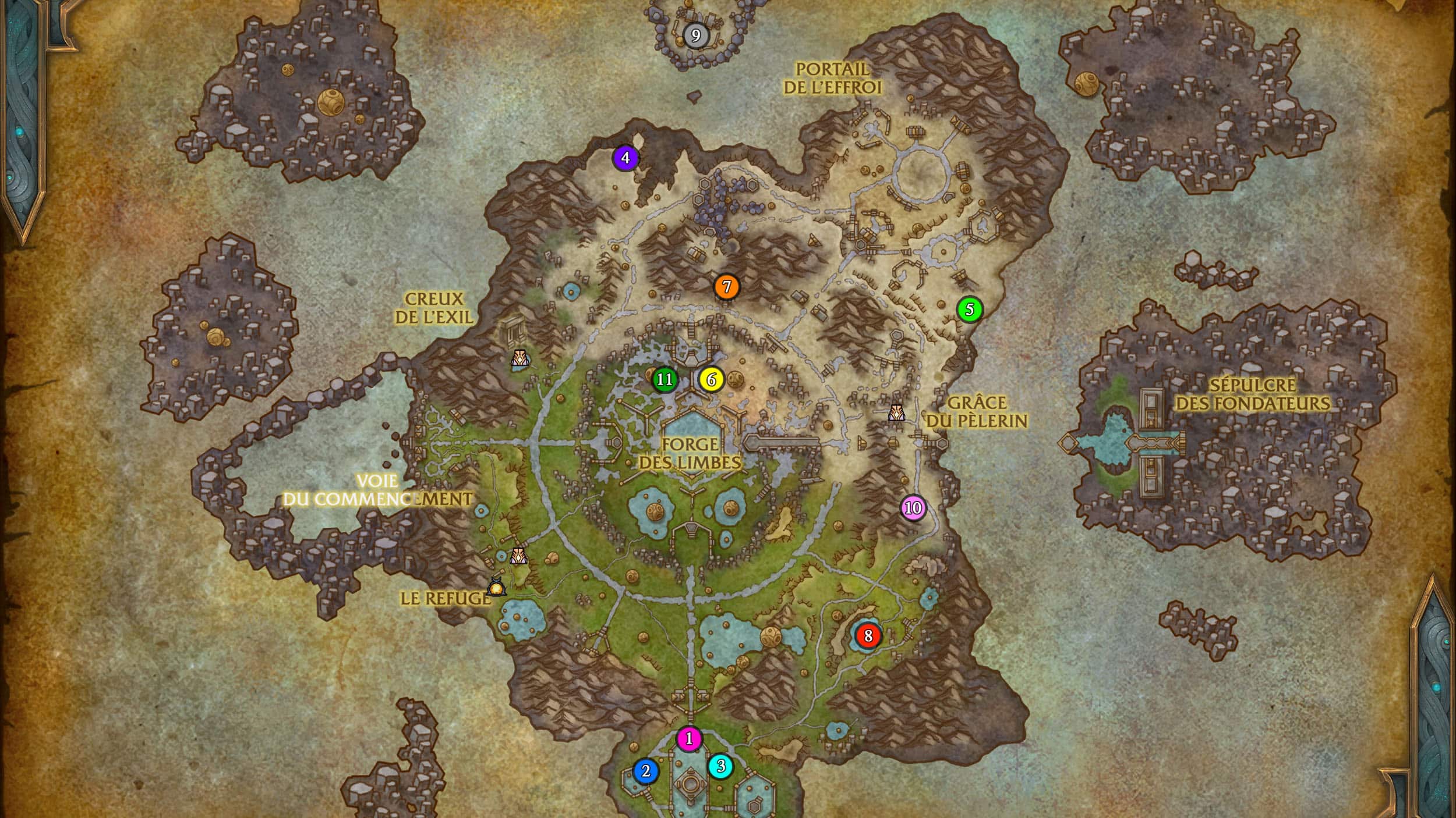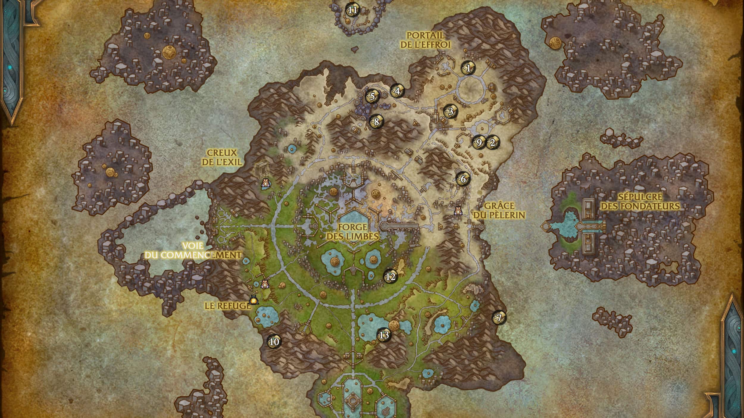 Translateurs dimensionnels sur l'équipement de Zereth Mortis pour parcourir une longue distance en fonction de l'étude des cryptogrammes des Fondateurs. De plus, le vol de Zereth Mortis est vivement conseillée pour atteindre ces hauteurs.