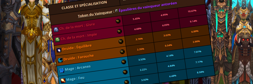 Vous pouvez découvrir l'apport en dégâts sur chaque classe et spécialisation avec des valeurs approximatives :