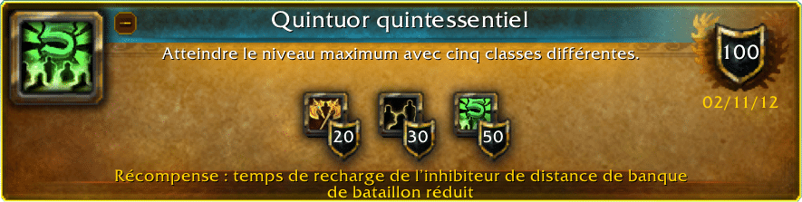 Quintuor quintessentiel : atteindre le niveau maximum avec 5 classes différentes pour réduire le temps de recharge à 2h.