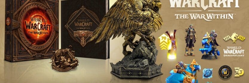 Un décompte a été lancé sur la boutique Blizzard Gear pour ouvrir les ventes de l'édition collector physique de The War Within au mercredi 17 avril, à 19 heures (heure de Paris) en avant-première. Cette nouvelle boîte de jeu pour les collectionneurs de l'univers Blizzard célèbre le 20e anniversaire de la licence avec plusieurs objets à l'intérieur : livre d'art de la guerre intérieure, la statue du cavalier gryphon, le pin's de collection (Anduin, Alleria et Thrall) et tous les bonus numériques. La boutique de Blizzard Gear est le seul revendeur pour proposer l'édition collector de l'extension contre 200 euros.