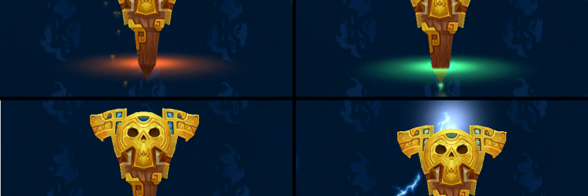 Les chamans de la race alliée des Trolls zandalari disposeront de totems adaptés pour l'air, terre, feu et eau :