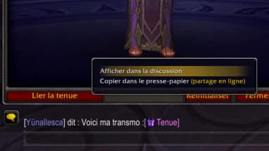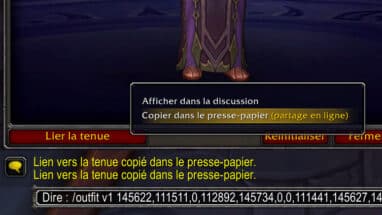 - Il est également possible de partager sa tenue en ligne par une copie dans le presse-papier avec une ligne de macro.