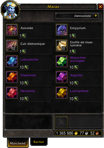 Dans la prochaine mise à jour 7.3.2 de Legion, Maras est un nouveau PNJ sur Argus dans le Vindicaar afin de pouvoir échanger vos sargerites primordiales contre des composants spécifiques à Argus : gemmes épiques, astralée, empyrium, cuir démonique et etoffe en tisse-lumière. Ce composant rare s'accumule sur vos personnages si vous ne confectionnez pas les pièces d'armure ou même par l'oblitérium primordiale.