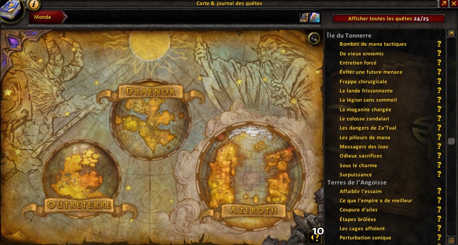 Depuis la pré-mise à jour 6.0.2, il n'est plus nécessaire d'avoir une guilde de niveau maximum puisque le bonus d'expérience a été supprimé. Ainsi, il ne s'agit plus d'un pré-requis pour votre course à l'expérience dans le nouveau continent de l'extension. Dans le tableau ci-dessous, nous pouvons d'ores et déjà constater un lien pour optimiser votre trajet avec l'île du tonnerre qui dispose d'un nombre incroyable de quêtes avec une accessibilité simplifiée avec la balise qui vous permet de vous téléporter au camp.