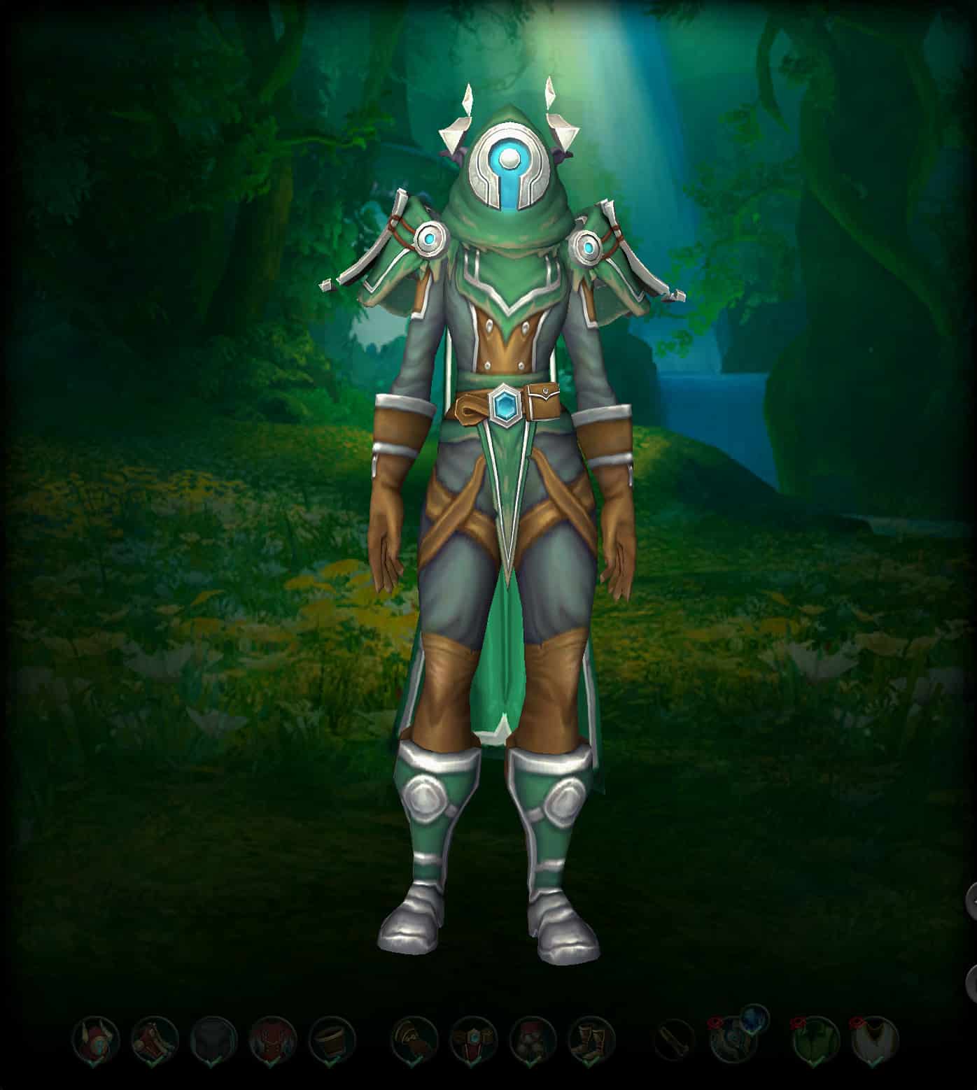 Ces pièces d'équipement constituent un ensemble d'armure avec une teinte de couleur verte.