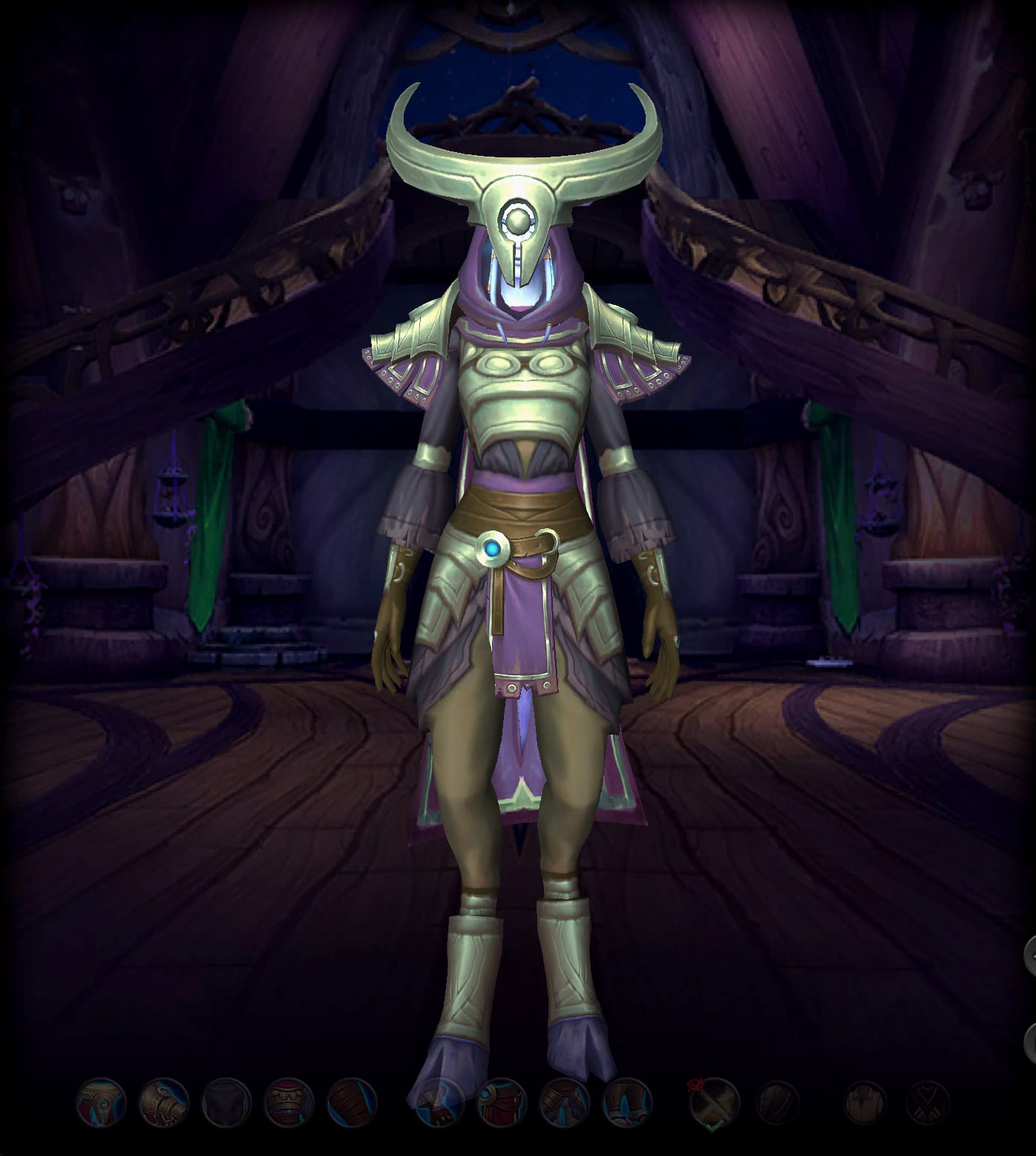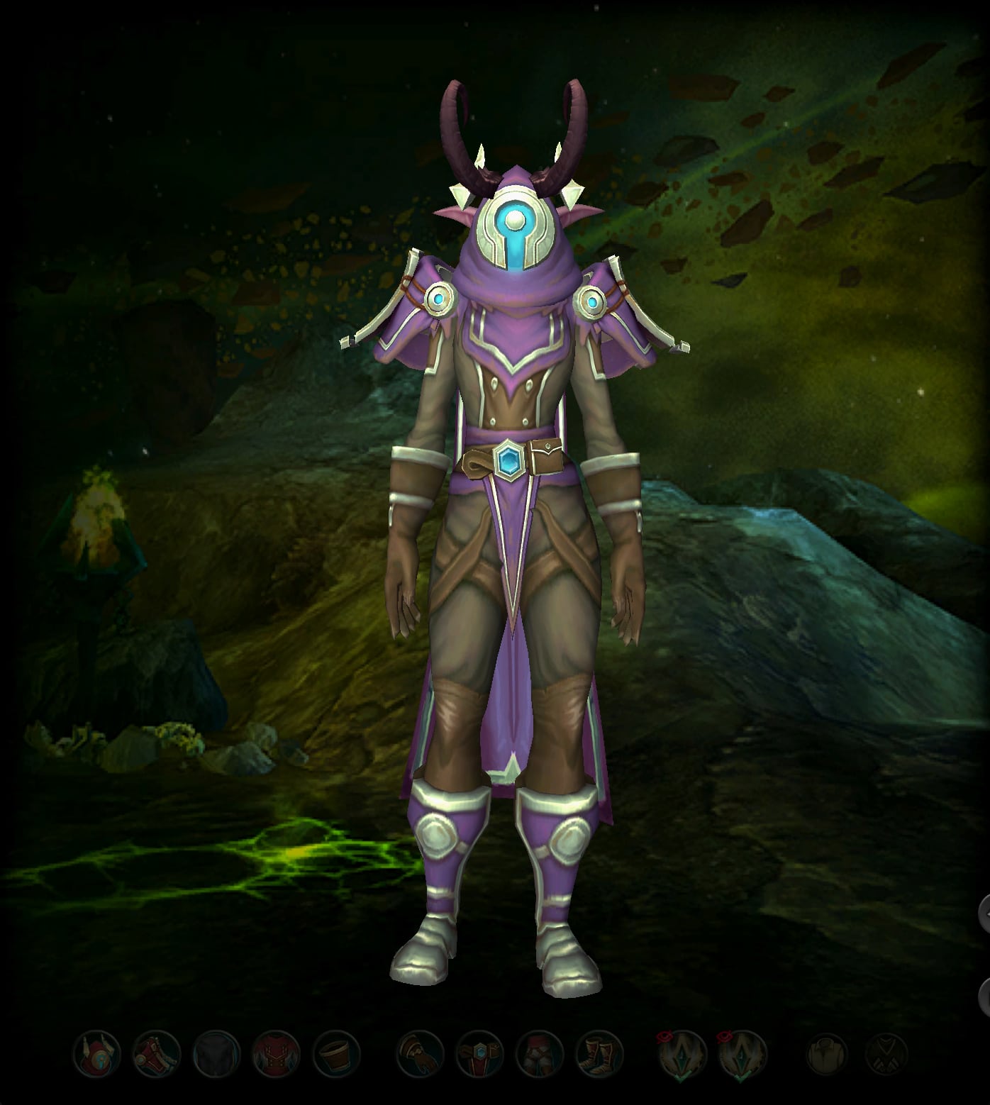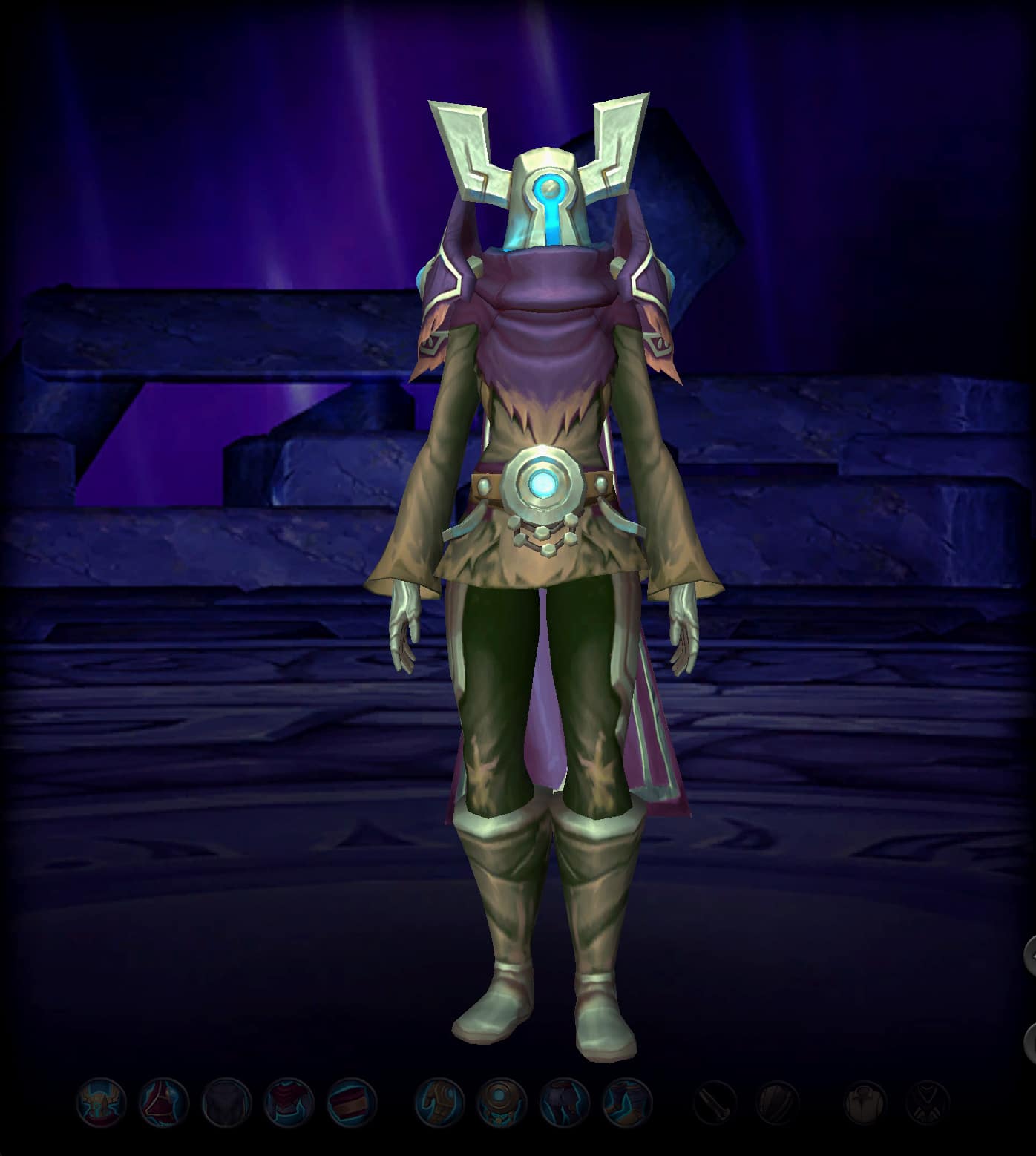 Ces pièces d'équipement constituent un ensemble d'armure avec une teinte de couleur mauve.