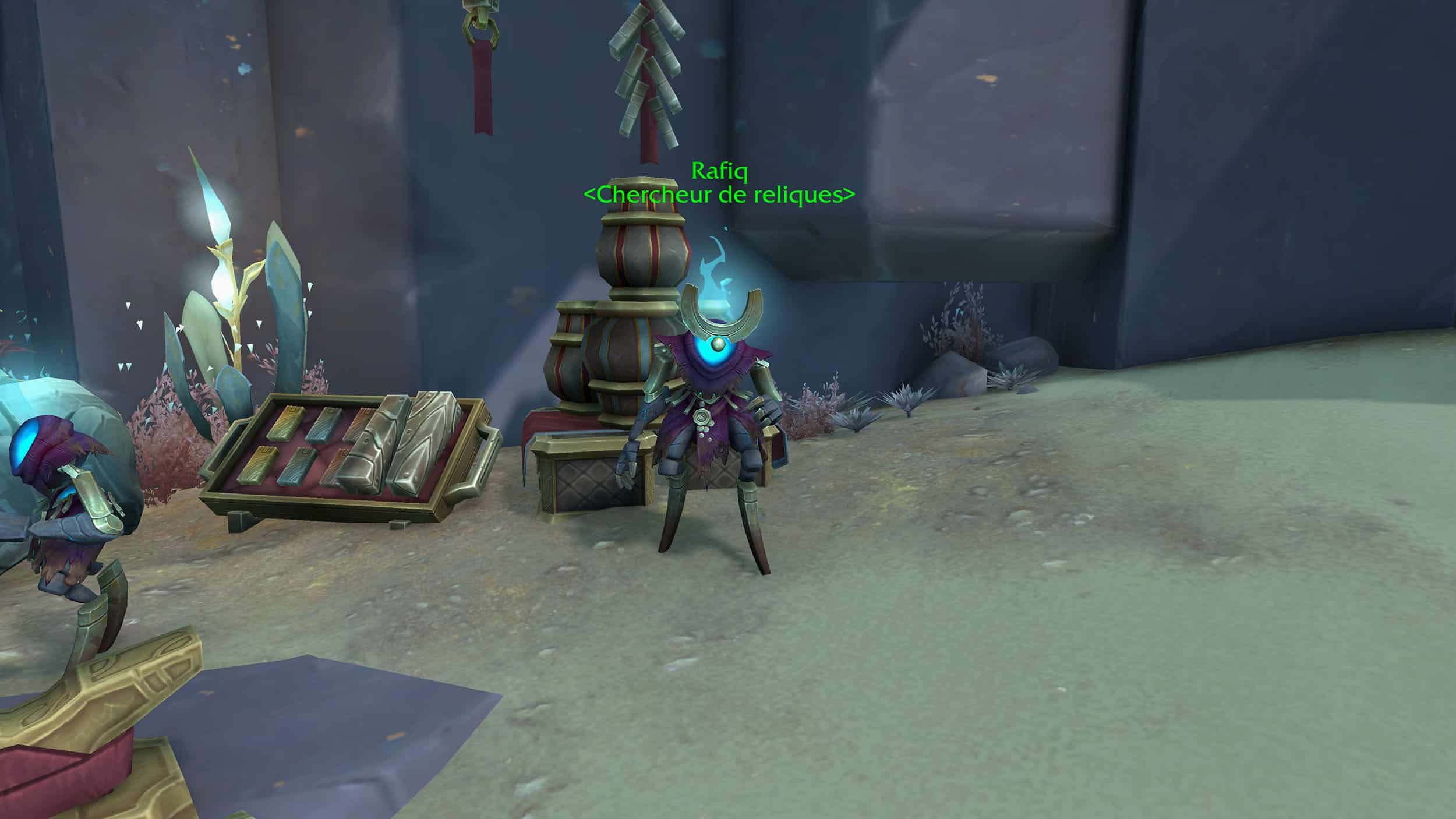 Un chasseur de reliques propose de puissantes pièces d'équipement de qualité épique sur la plupart des emplacements d'armure, hormis sur les armes et les accessoires. Cette armure dispose de 246 de niveaux d'objet : légèrement inférieur au mode normal du sépulcre des Fondateurs. Cet intendant échange les marchandises contre plusieurs