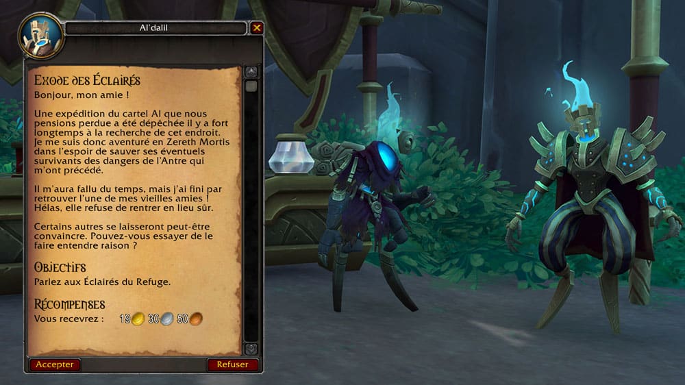 Un moyen pour une fin : Terminer la suite de quêtes « Un moyen pour une fin » de Zereth Mortis.