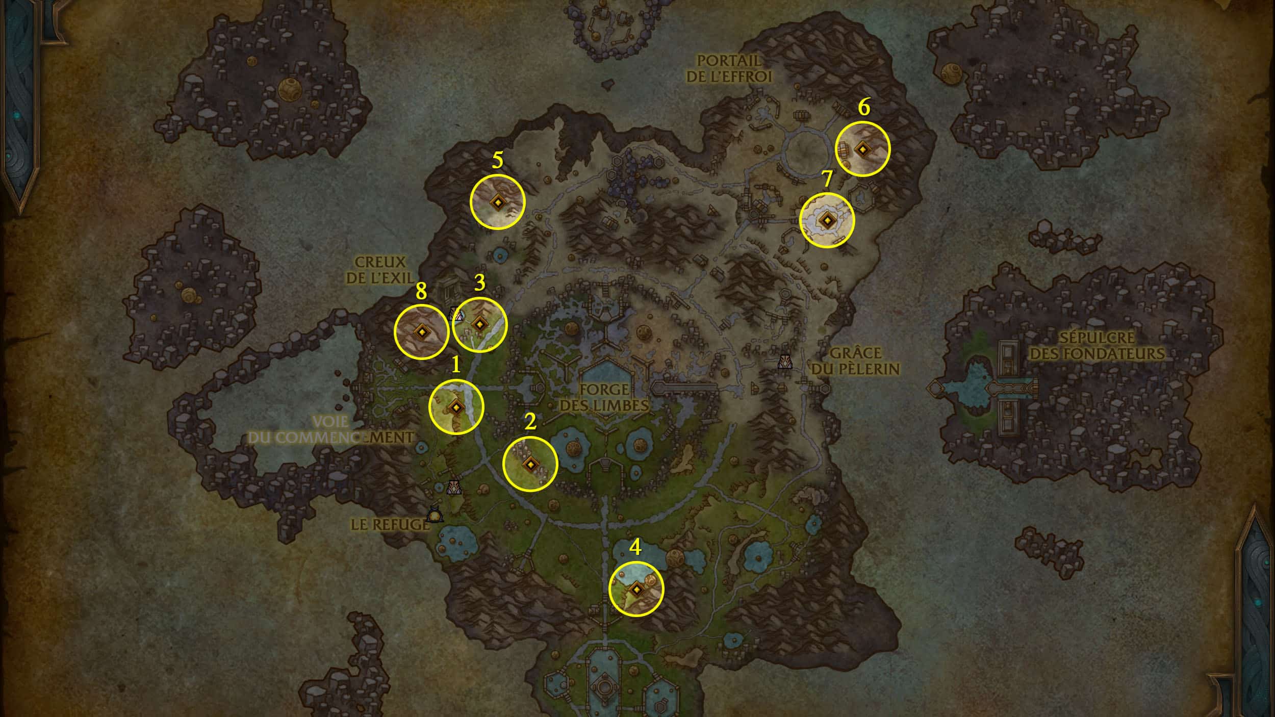 Vous pouvez retrouver l'emplacement de ces 8 pages de l'Exil de Firim à travers le royaume de Zereth Mortis :