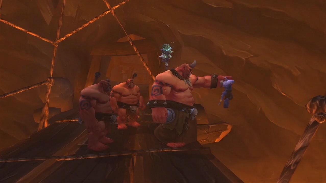 Le premier donjon a été révélé car il s'agit des Mines de scories Masse-sanglante : ce donjon comporte 4 boss d'un ordre non-linéaire et se situe dans la zone de la Crète de Givrefeu (zone de départ de la horde). Le but de ce donjon est de libérer des orcs pour déclencher une révolte ! Les prisonniers sont des Draeneis, Humains, et Orcs maltraités par des Ogres dans des positions peu enviables.