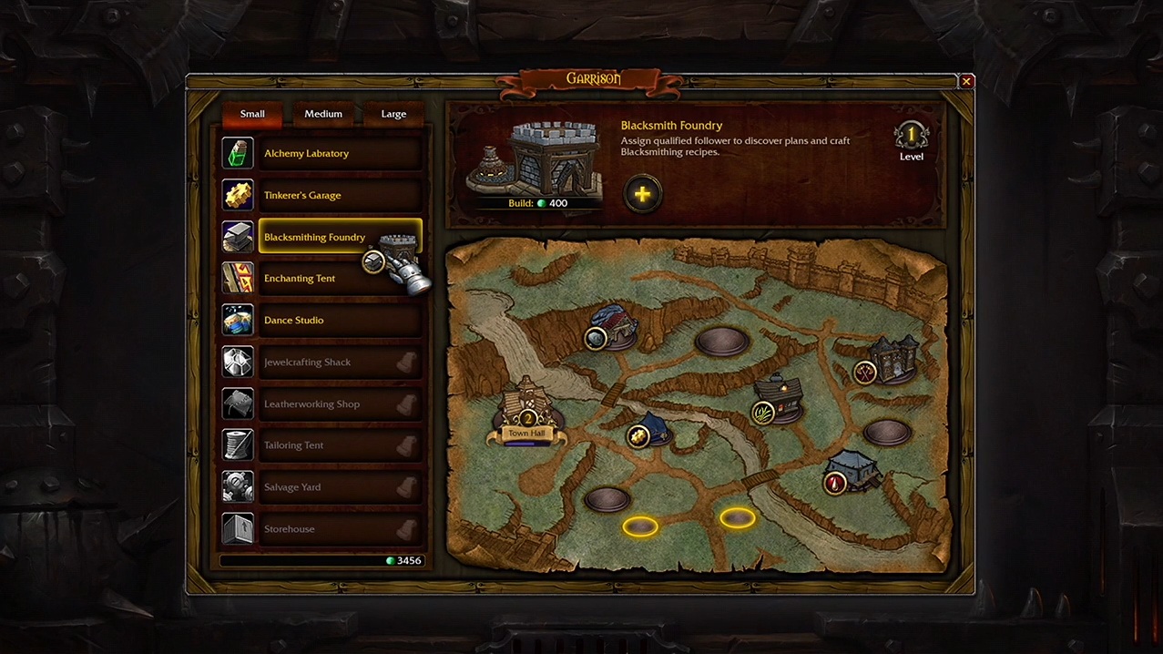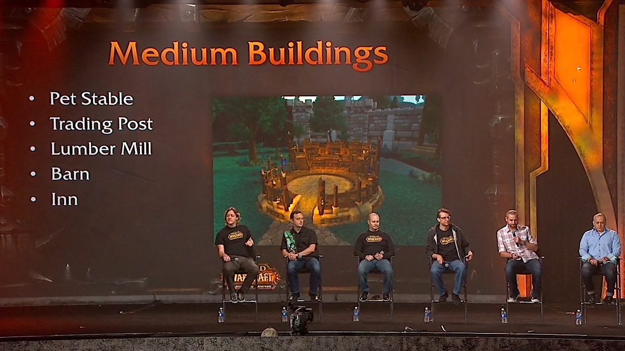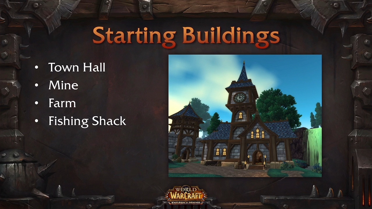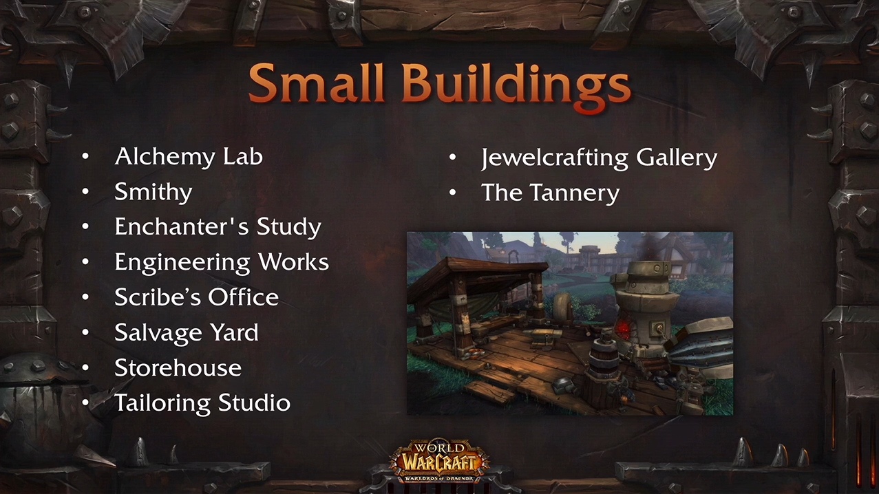« En ce qui concerne les bâtiments liés aux métiers, nous souhaitions que le joueur soit en mesure d’évoluer non seulement avec ses points de compétences, mais aussi visuellement à travers son fief. A mesure que le joueur progresse, chaque bâtiment lié à un artisanat se développera viset le bâtiment deviendra de plus en plus imposant au fil de la progression du personnage-joueur. Chacun de ces bâtiments a été pour nous l’occasion de décrire le PNJ qui y travaille ; son apparence soignée ou au contraire négligée, la façon dont il travaille et la manière dont il évolue à vos côtés à mesure que votre fief se développe. Nous avons également pensé qu’il serait intéressant d’attribuer de petites différences raciales à certains métiers, comme des joailliers draeneï ou des forgerons nains, afin d’y incorporer les nombreuses races qui donnent à l’univers de World of Warcraft toute sa profondeur et son histoire. »