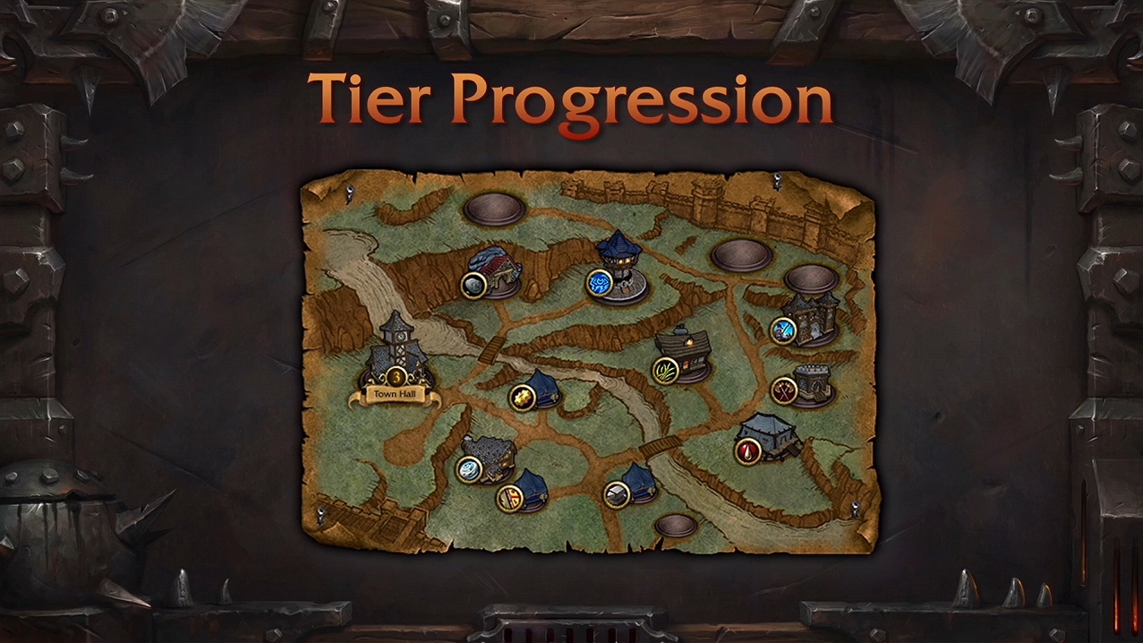 Nous avons donc bâti le nouveau sur les fondations de l’ancien. Tout en conservant l’esprit d’origine des vieux bâtiments, nous avons commencé à explorer de nouveaux concepts. Nous avons élaboré de nouvelles silhouettes et mis en avant les spécificités de chaque bâtiment, créant ainsi des améliorations visuellement captivantes, à découvrir au fil du jeu. Ainsi, quand les joueurs verront une grosse caisse en bois et une scie émoussée, ils sauront qu’il s’agit d’une scierie de premier niveau. Quand leur armée sera assez importante et qu’ils auront enfin accès à la scierie de troisième niveau, croyez-moi, la Horde de Fer ne leur fera plus peur !