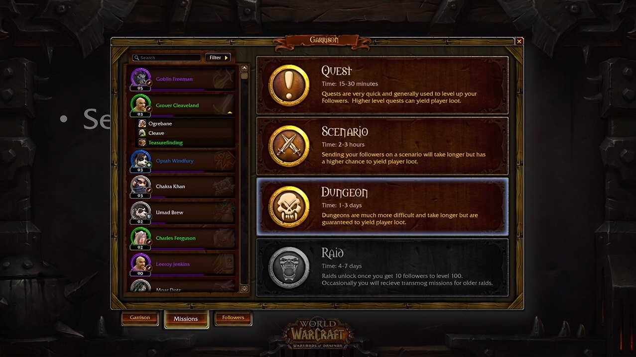 - Envoyez le faire votre travail à votre place : Raids, Donjons, Récolte, Quêtes...